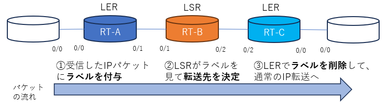 | LER(Label Edge Router) | IPパケットにラベルを付けたり剥がしたりするルーター(境界) |